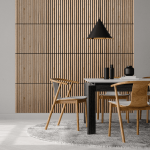 The Akupanel can be used for creating beautful slat walls and ceilings which adds a modern look to the room. The panel is sound dampening and removes reverberation within the room, which drastically improves the acoustics within the room.